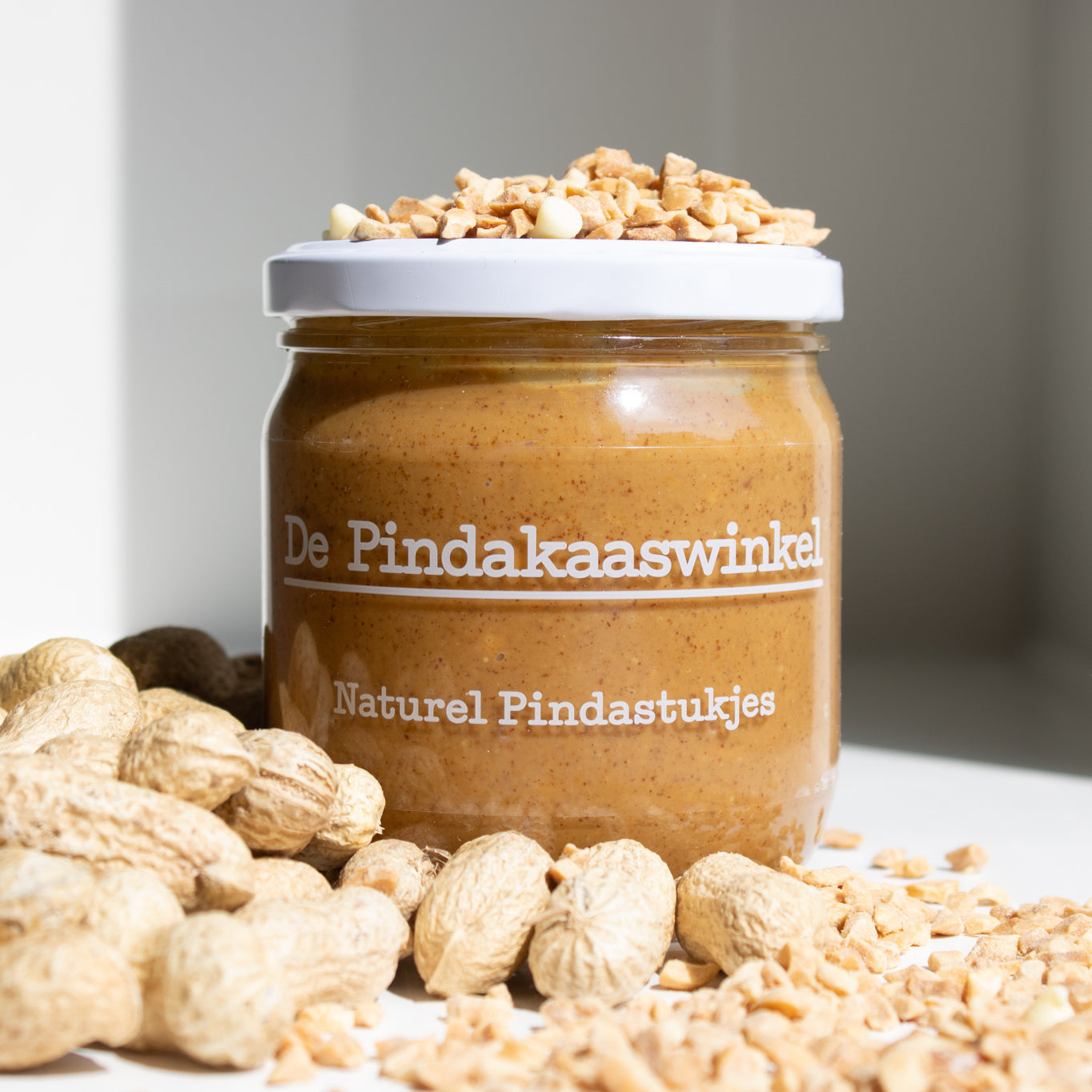 Onze naturel pindakaas is onze basis en aan deze variant hebben we stukjes pinda's toegevoegd voor een crunchy bite. De pinda’s komen uit Argentinië in de regio van Cordoba en zijn de lekkerste die wij geproefd hebben. Onze naturel pindakaas is gemaakt van bijna 100% pinda's, zonder toegevoegde suikers of kunstmatige toevoegingen. Pinda’s zijn een uitstekende bron van gezonde vetten, eiwitten (25% ADH/100g) en vitamine E (12% ADH/100g). Daarnaast bevat deze pindakaas een klein beetje zout, wat de nootachtige smaak van de pinda’s perfect versterkt zonder de natuurlijke smaak te overstemmen. Ook gebruiken we een heel klein beetje kokosolie (minder dan 2%) om het mondgevoel iets aangenamer te maken en daarmee doen we een gooi naar de lekkerste pindakaas ter wereld!