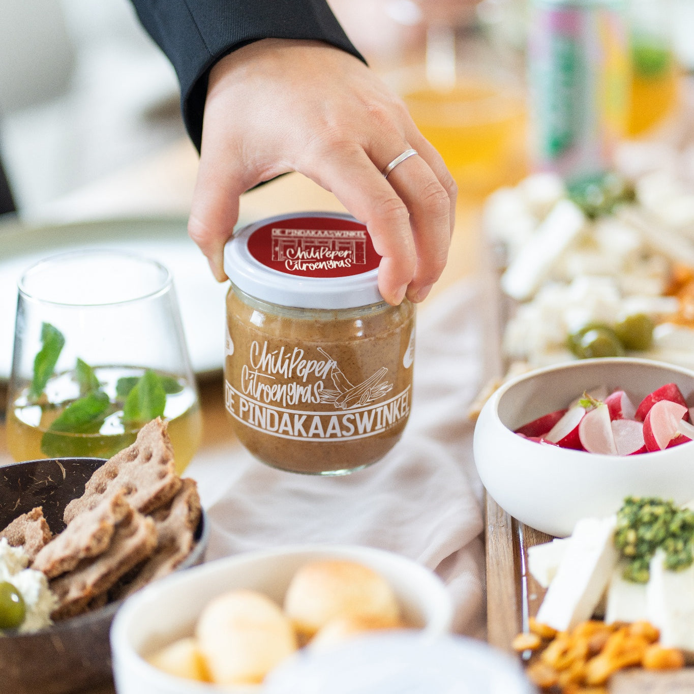 de pindakaaswinkel deksel met brood